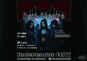 Die Dunkelheit ruft! Am Samstag, den 1. November, öffnet das „Dark Theatre“ seine Pforten im Studentenclub Kiste. Ab 22 Uhr könnt ihr zu DJ Caos tanzen, der euch mit einem Mix aus Elektro, Darkwave, Gothrock und Postpunk versorgt. Für nur 2 Euro Eintritt taucht ihr in die schwarze Szene ein – seid bereit für eine düstere Nacht!